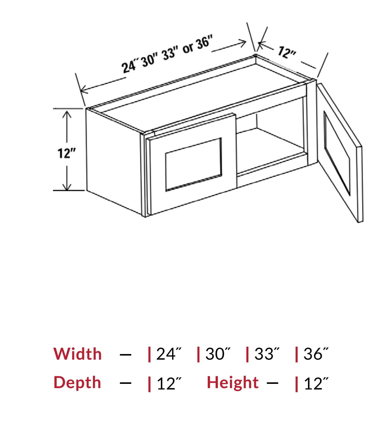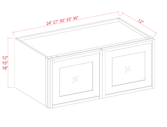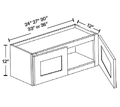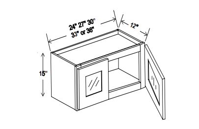 Easy Reach Wall Glass Door Cabinet - 24"W x 15"H x 12 "D - Shaker White